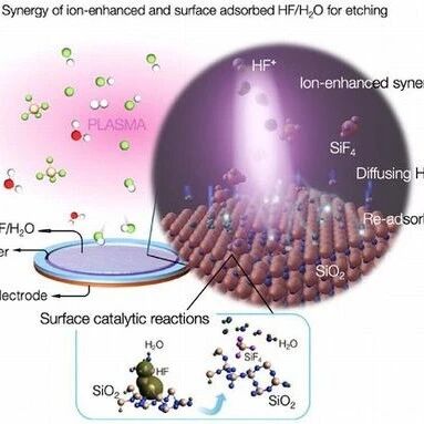 如果您希望可以时常见面,欢迎标星收藏哦~ 2026年1月,名古屋大学低温等离子体科学研究中心肖新安教授和堀胜教授领导的研究团队与东 京电子宫城株式会社合作,宣布他们已阐明了使用冷却晶片和氟化氢(HF)等离子体的反应离子 刻蚀(RIE)工艺的机理。与传统工艺相比,二氧化硅( SiO2)薄膜的刻蚀速度提高了五倍。此 外,使用HF作为刻蚀气体也降低了对环境的影响。 在制造结构精细复杂的器件时,例如 GAA(环栅)晶体管和 3D NAND 闪存,传统 RIE 工艺的 蚀刻速率会显著降低。为了解决这个问题,我们提出了一种采用 HF 等离子体并冷却晶圆的新工 艺。 当衬底温度保持在较低水平,例如-60℃时,刻蚀气体HF和反应产物水(H2O )会吸附在SiO2表 面。研究发现, H2O起到催化剂的作用,将SiO2的刻蚀活化能降低到几乎为零。 点这里加关注,锁定更多原创内容 *免责声明:文章内容系作者个人观点,半导体芯闻转载仅为了传达一种不同的观点,不代表半导体芯闻对该 观点赞同或支持,如果有任何异议,欢迎联系我们。 10万亿,投向半导体 芯片巨头,市值大跌 黄仁勋:HBM是个技术奇迹 Jim Keller:RISC-V一定 ...