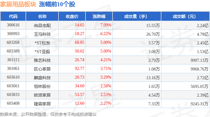 家居用品板块11月7日涨0.05%,雅艺科技领涨,主力资金净流出4842.21万元