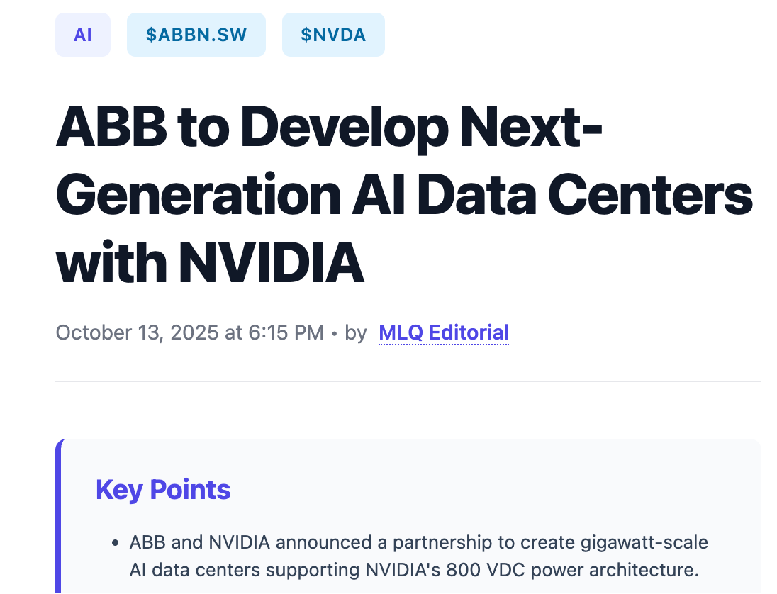 ABB与英伟达共同推进吉瓦级数据中心建设,800VDC供电架构引关注