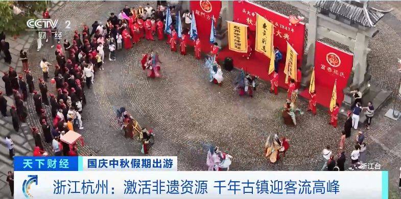 (央视财经《天下财经》)国庆中秋假期期间,浙江多地推出一系列特色文旅活动,丰富游客们的游玩体验。 其中,部分景区呈现出消费人次和营收同比翻番的红火态势。 在浙江富阳龙门古镇,龙门庙会盛大开幕。行龙灯,跳竹马,跳魁星,表演者们身着戏服、面绘三国脸谱,演 绎布阵对战,还原古战场场景。 在浙江宁波江北区慈城古县城景区,近200个摊位汇聚了全国各地的各种美食。老茶馆里全天候演出宁波评话、 甬剧等传统曲艺,让游客在茶香中感受古城韵味。 与此同时,会跳舞的机器人、机器狗等科技感满满的元素在景区里也随处可见。丰富的体验项目,让慈城古县 城景区在假期首日接待人数就接近12万人次,同比增长115%;实现营收420多万元,同比增长257%。 在宁波市镇海区,古海港遗址"万斛神舟"停泊处也成为国庆消费新热点。当地在复原宋代场景的基础上,融入 现代餐饮、演艺等元素,进一步拉动了消费人气。 浙江宁波某文旅项目负责人 王艺昕:假期里我们的包厢早就预订满了,大厅翻台率3至4次,每天客流达到1万 人次,营业额超10万元。 转载请注明央视财经 为了让游客深度感受古镇文化,当地精心设计一条祈福之旅线路,串联景区内关帝庙、天子堂、孙氏宗祠等核 心 ...