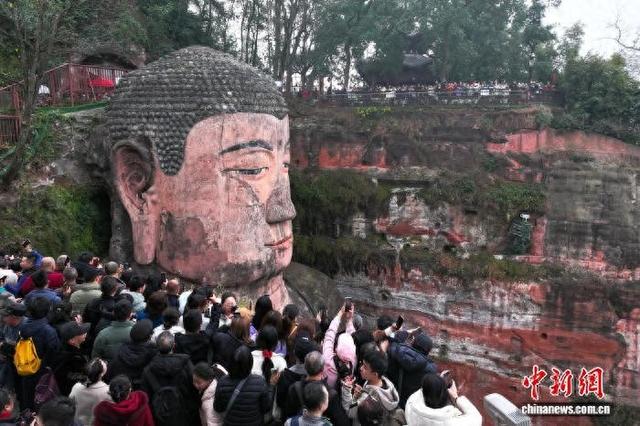 (新春见闻)四川乐山大佛景区游人如织