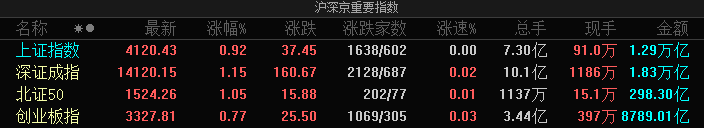 沪指涨近1%站上4100点,两市成交额突破3万亿大关
