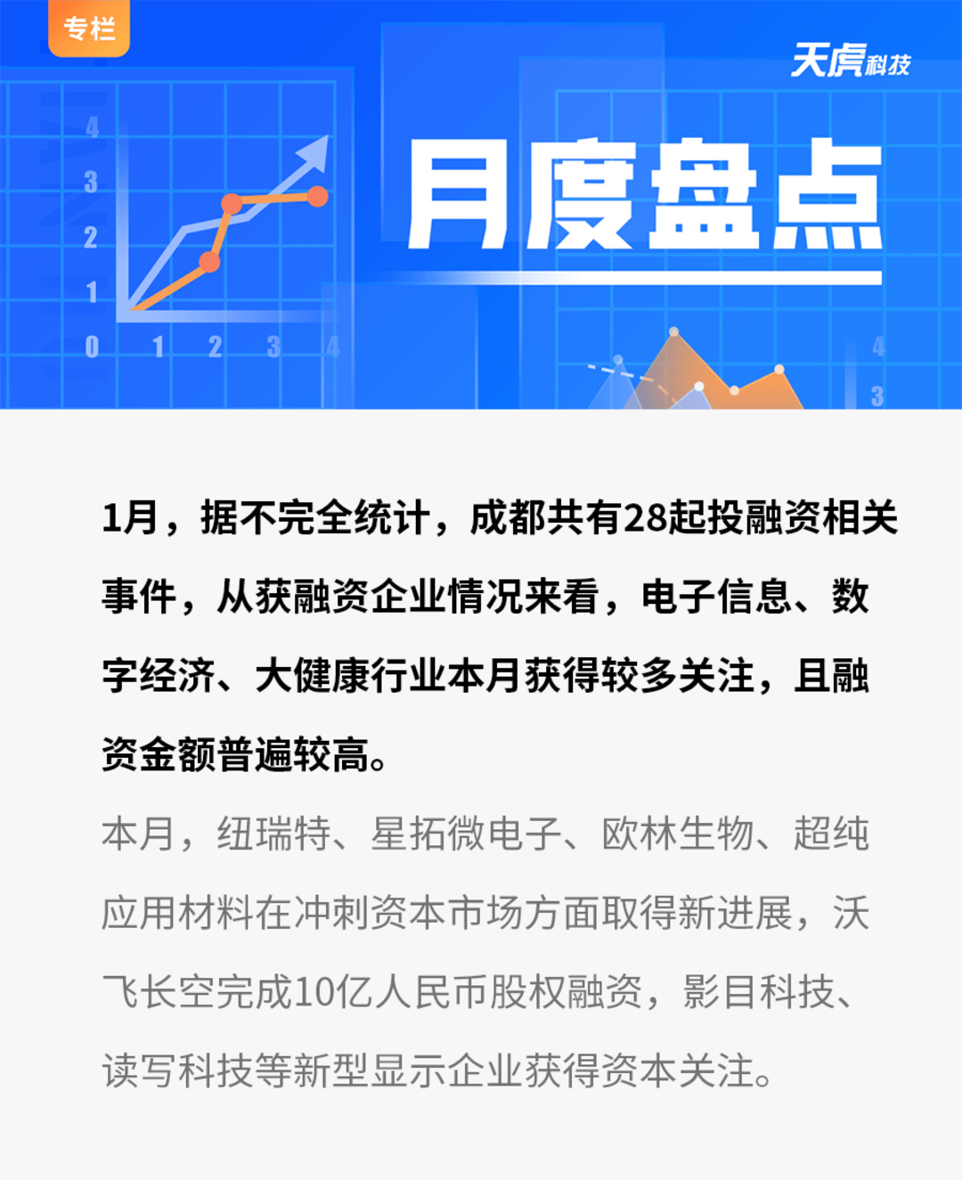 盘点:成都1月重要投融资事件及产业环境数据汇总