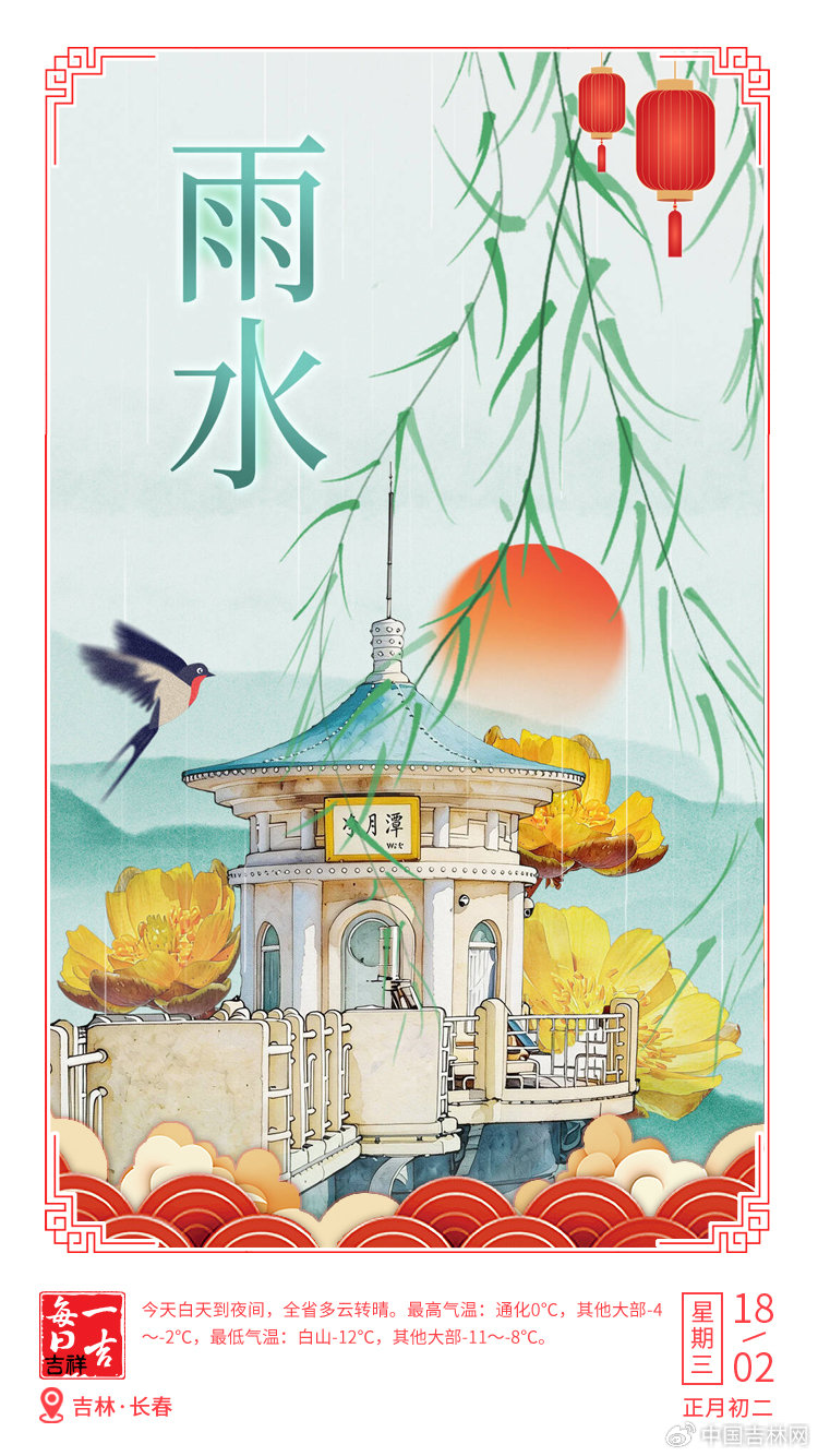 【天气】今天白天到夜间,全省多云转晴。最高气温:通化0℃,其他大部-4~-2℃,最低气温:白 山-12℃,其他大部-11~-8℃。 【有礼】吉刻新闻APP"签到有礼"计划已启动。每月将从连续签到的用户中,抽取5位幸运读者,每人赠送 一本精选好书。坚持到年底的用户还有惊喜大奖。 【恢复】2月18日(初二)起,长春万象城恢复冬季正常营业时间,10:00-21:30。 【禁止】吉林市松花湖管理局日前发布公告,松花湖水域进入春融解冻期,极易引发冰面塌陷、坠冰溺水 等安全事故。禁止任何单位和个人擅自在松花湖冰面开展游玩、逗留、冬泳、滑冰、垂钓、捕鱼等活动; 禁止任何行人、车辆擅自在松花湖冰面通行。 省内 ★2026年春节假期前2天(2月15日至16日),全省重点A级旅游景区及冰雪旅游场所累计接待游客量较上 年春节同期(2025年1月27日至28日)增长29.8%,假日文旅市场迎来强势开门红。 ★假期前两日,长春市整体消费金额达24亿元,同比增长11.7%;消费人次达261万,同比增长20%以上; 国内游客接待量、出游总花费同比分别增长18.50%和21.05%,京津冀、长三角游客同比增长18.69%,18- 45岁核心 ...