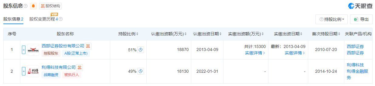 近日,西部利得基金管理有限公司(下称"西部利得基金")被上海金融法院列为被执行人,执行金额为2.91亿元。尽管没有详细的被执行原因,但舆论中已 有关于公司股东之一利得科技股权质押的关联猜想。 11月14日,《每日经济新闻》记者向西部利得基金了解情况,上海金融法院此前作出的裁定源于公司旗下专户产品的商事纠纷,与股东股权质押无关。 公司方面表示,股东与公司经营的界限清晰,不会参与公司的经营。此外,本次法院裁定不会对基金公司的经营产生重大影响。 公司回应:被执行原因来自旗下专户产品商事纠纷 来源:天眼查 照此推算,利得科技持股的金额大约为1.813亿元。碰巧的是,利得科技在今年已分两次出质股权,出质股权的数额合计恰好也是1.813亿元。因此,外界对 二者之间的关联十分重视,记者也注意到,利得科技已经被列为被执行人。 | 全部4 | 股权出质 4 7 历史股权出质 17> 身为质权人 | 身为出质人 4 | 身为股权标的企业 | | 登记日期~ | 状态不限 · | | Q 点击进行 | | --- | --- | --- | --- | --- | --- | --- | --- | --- | | 序号 | | ...
