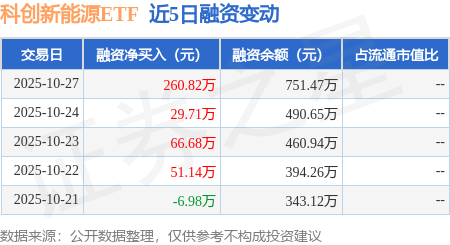 科创新能源ETF:10月27日融资净买入260.82万元,连续3日累计净买入357.21万元