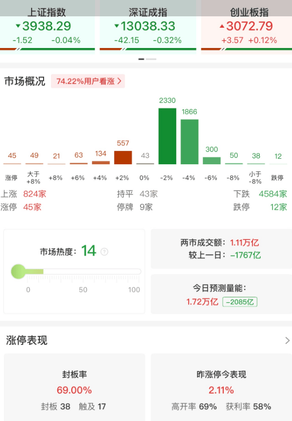 A股午评:三大指数震荡,沪指跌0.04%创业板指涨0.12%,保险、银行、锂矿、军工装备板块走强!超4500股下跌,成交11157亿缩量1804亿