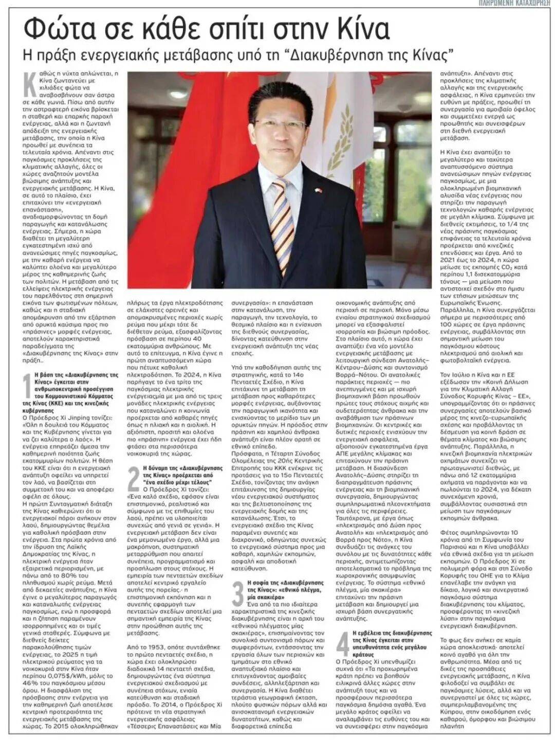 αναβοσβήνουν σαν άστρο σε κάθε γιωνιά. Πίσω από αυτήν thy adtoadrean εικόνα βρίσκετα n σταθερή και επαρκής παρακή ενέρνειας, αλλά και η ζωντανή απόδειξη της ενεργειακή μετάβασης, την οποία η Κίνα ηροωθεί με συνέπεια το teAkutala xpóvia. Anévaya auc αγκόσμιες προκλήσεις της κλιματικής αλλανής, όλες οι ωρες αναζητούν μοντέλα Brusaiunc avantuEnc kar ενεργειακής μετάβασης. Η Κίνα. BE QUTÓ TO Πλαίσιο, έχει ENITOXUVEI I'NY REVEDVEIOKI Ennyhatnom αναδιαμορφώνοντας τη δομή napavisync και κατανάλωση ενέργειας. Σήμερ ...