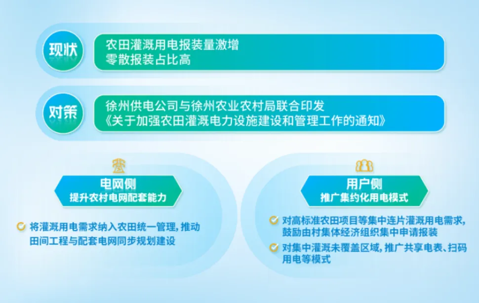 手机屏幕轻轻一划,清冽的井水便欢快地顺着管道涌进麦田。 "现在浇地,是真省心!"11月19日,江苏徐州新沂市瓦窑镇高标准农田边,一排排电杆整齐矗立,崭新的电表箱格外醒目。村民王春艳指 尖在手机屏幕上轻轻一划,接入"公共插座"的水泵应声启动。 这一幕,正是江苏农业电气化发展的生动缩影。在徐州,村民长期以来灌溉零散用电,电线纵横交错、电表杂乱林立的景象已成为历史。 用电报装激增背后的农业变革 随着农业电气化水平提升,江苏农村地区用电报装需求持续高涨。数据显示,2022年以来,徐州地区低压业扩报装量年均增长超30%, 2024年更是以12.85万户的报装量居全省首位,其中约三成来自农业灌溉用电。 激增的零散报装,不仅带来安全隐患,也加大了电网投资和运维压力。如何破题? 徐州探索出一条从"各自为战"到"集中灌溉"的新路径,让电力精准赋能田间地头,悄然改变着传统农业的生产节奏。 02 过去浇地像"闯关",烧钱还揪心 对于依靠种粮维持生计的农户来说,及时灌溉是头等大事,然而在过去,这并非易事。 王春艳家有20亩地,分散在不同地块,种植小麦、玉米等作物。"最早挑水浇地,累得直不起腰,后来打了井,但用柴油机抽水成本高, 接电 ...