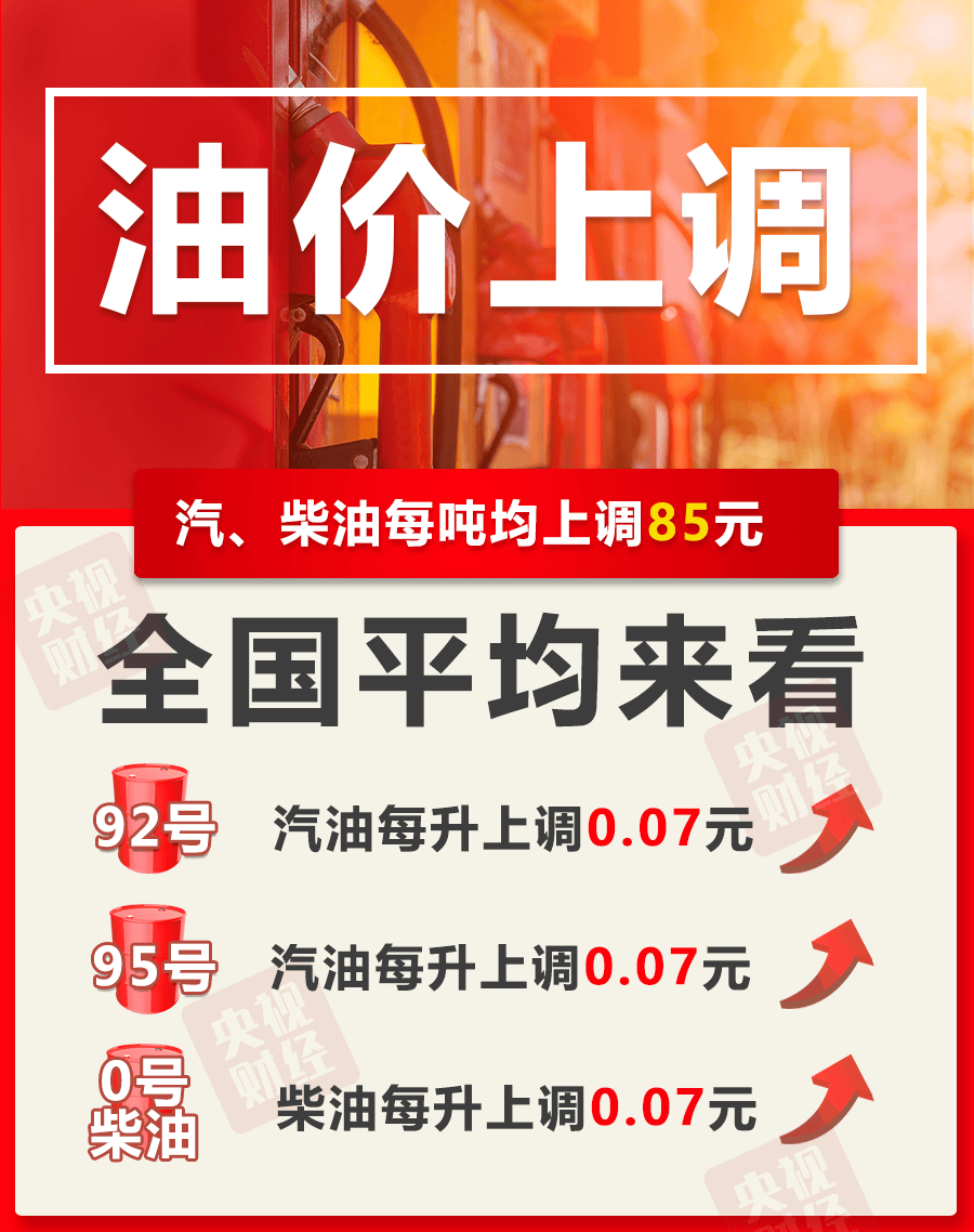 来源:央视财经 1月20日24时起,国内汽、柴油价格每吨均上调85元。全国平均来看:92号汽油、95号汽油、0号柴油每 升均上调0.07元。记者给您算了笔账,用92号汽油加满50升油箱将多花3.5元。 记者今天从国家发展改革委了解到,1月20日24时国内成品油调价窗口将开启。受国际油价上涨影响, 国内汽、柴油价格将上调,这也是2026年成品油价格首次上调。 ...