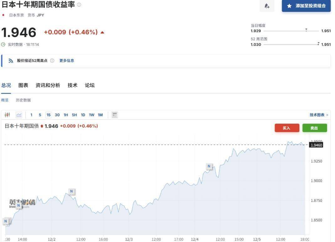 还记得2024年7月日本央行那次突然加息吗?日经指数单日暴跌13%,纳斯达克也被拖累下跌3.4%,全球市场一片恐慌。 眼下,新一轮的全球央行"超级周"已经到来,市场预计美联储将在12月11日凌晨宣布降息25个基点,而日本央行则在12月1日由行长植田和男强烈暗示,可 能在12月19日的会议上加息25个基点。 美日货币政策这一降一升的罕见分化,让不少投资者心里发慌,担忧去年的市场暴跌会重演。 | 日本十年期国债收益率 © | 14 | ★ 添加至投资组合 | | --- | --- | --- | | · 日本东京 货币 JPY | | | | 1.946 +0.009 (+0.46%) ▲ | 当日幅度 1.929 | 1.951 | | ⊙ 实时数据 · 18:11:14 | 52 周范围 1.030 | 1.951 | | > 股价接近52周高点 1 更多信息 | | | 但这次的情况,可能和很多人想的完全不一样。 这次日本加息,很可能只是"雷声大雨点小"。 回顾过去两年,日本其实已经进行了三次加息。 除了2024年7月那次"突袭"引发市场巨震外,今年1月初的加息幅度虽然更大(25个基点),但日经指数仅下跌 ...
