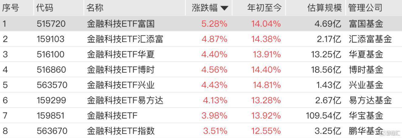 AI应用方向持续爆发,大金融板块走强,金融科技ETF涨超4%