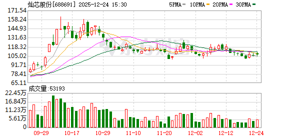 两融数据显示,该股最新融资余额为4.94亿元,近5日增加1792.34万元,增幅为3.76%。 据天眼查APP显示,灿芯半导体(上海)股份有限公司成立于2008年07月17日,注册资本12000万人民币。 (数据宝) 灿芯股份12月24日大宗交易平台共发生2笔成交,合计成交量12.50万股,成交金额1311.38万元。成交价 格均为104.91元,相对今日收盘价折价1.50%。 进一步统计,近3个月内该股累计发生30笔大宗交易,合计成交金额为3.56亿元。 证券时报·数据宝统计显示,灿芯股份今日收盘价为106.51元,上涨0.86%,日换手率为7.44%,成交额 为5.67亿元,全天主力资金净流入4770.80万元,近5日该股累计下跌2.27%,近5日资金合计净流入 3104.77万元。 12月24日灿芯股份大宗交易一览 (文章来源:证券时报网) | 成交量 (万股) | 成交金额 (万元) | 成交价格 (元) | 相对当日收盘折 溢价(%) | 买方营业部 | 卖方营业部 | | --- | --- | --- | --- | --- | --- | | 10.50 | 1101.56 | 104.91 ...
