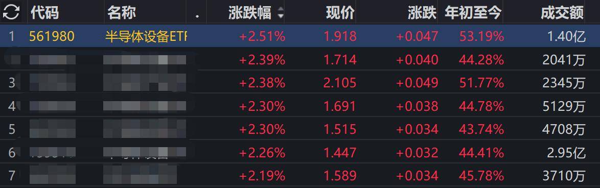 半日涨幅位居同类第一!半导体设备ETF(561980)午盘收涨2.51%,金海通、中科飞测大涨8%