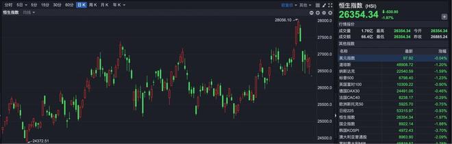 港股开盘:恒指跌1.97%、科指跌2.42%,科网股、黄金股普跌,卓正医疗IPO首日涨超35%