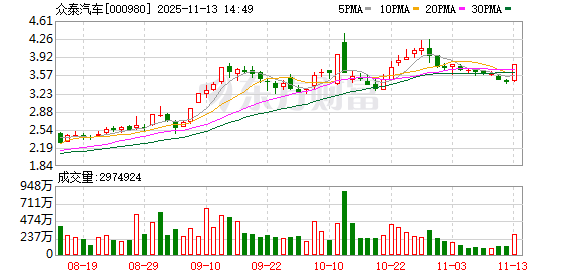 每经AI快讯,11月13日,众泰汽车盘中涨停,涨幅9.88%,成交额超9亿元。 (文章来源:每日经济新闻) ...