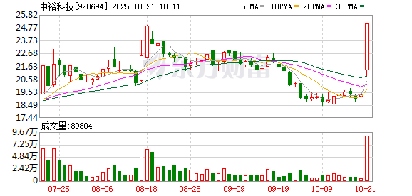 证券时报·数据宝统计显示,中裕科技所属的基础化工行业,目前整体涨幅为0.40%,行业内,目前股价 上涨的有253只,涨幅居前的有中裕科技、振华股份、嘉澳环保等,涨幅分别为29.96%、10.00%、 7.16%。股价下跌的有157只,跌幅居前的有三孚股份、纳尔股份、六国化工等,跌幅分别为6.20%、 4.21%、4.19%。 两融数据显示,该股最新(10月20日)两融余额为1272.09万元,其中,融资余额为1272.09万元,近10 日增加220.01万元,环比增长20.91%。 公司发布的半年报数据显示,上半年公司共实现营业收入3.59亿元,同比增长23.81%,实现净利润 5260.54万元,同比增长41.84%,基本每股收益为0.4700元,加权平均净资产收益率6.23%。(数据宝) (文章来源:证券时报网) 中裕科技股价创出历史新高,截至9:43,该股上涨29.96%,股价报25.07元,成交量803.69万股,成交金 额1.93亿元,换手率12.86%,该股最新A股总市值达33.11亿元,该股A股流通市值15.67亿元。 ...