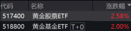 金价午后大幅拉升!黄金股票ETF(517400)涨超2.5%