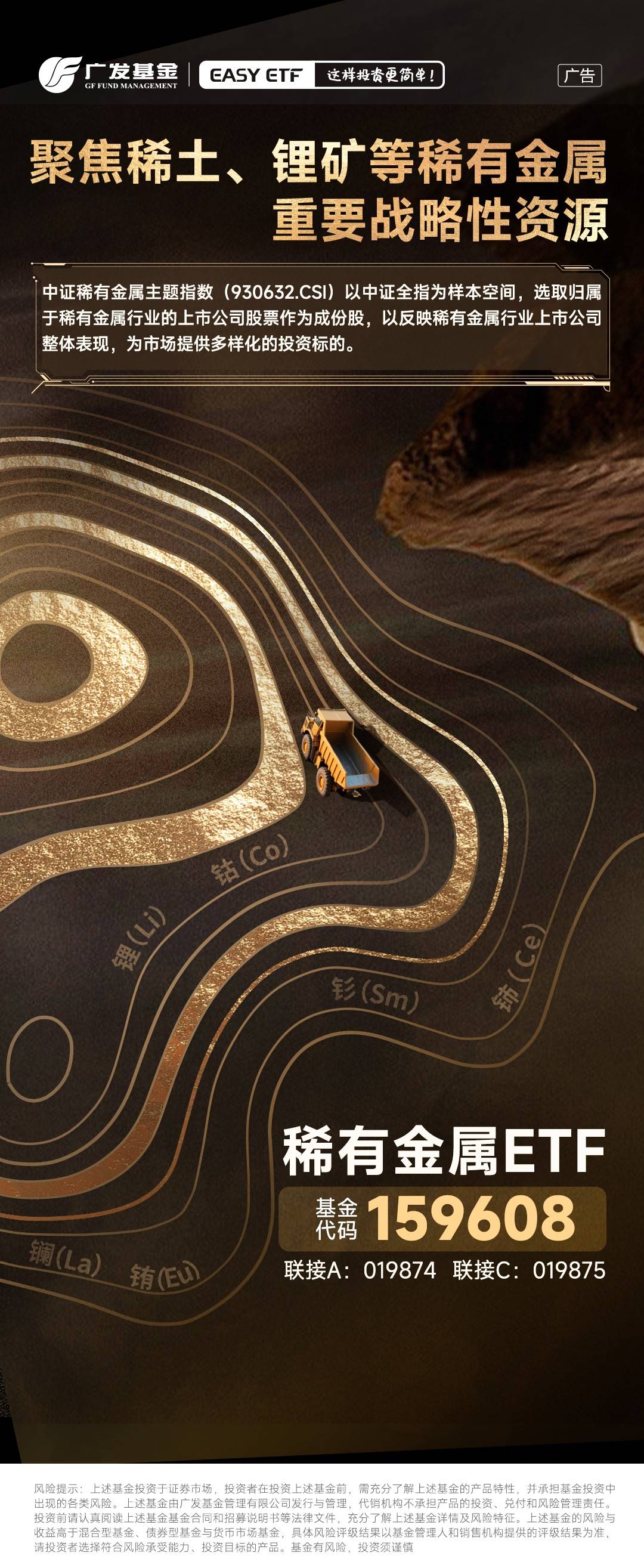 2月25日,上证指数早盘涨逾1%,钢铁、有色金属、化工板块领涨,市场近4000只个股上涨。小金属板块持续大涨,Wind数据显示,中证稀有金属指数 早盘盘中涨超6%,相关ETF如稀有金属ETF(159608)同步跟涨,盘中交投活跃,涨幅居前。Wind数据显示,稀有金属ETF(159608)最新规模超50亿 元,流动性同类居前;从业绩表现看,该ETF近1年涨幅超114%,在Wind二级分类中排名前2%,期间跟踪指数误差仅0.0326%。 消息面上,美国计划利用五角大楼开发的人工智能项目,为关键矿产制定参考价格,以支撑其构建全球金属贸易集团的计划,首批将聚焦锗、镓、锑、钨 四种金属,随后将逐步扩大覆盖范围。 一键布局稀土+有色,稀有金属ETF(159608,联接A/C类019874/019875)跟踪中证稀有金属主题指数,指数样本聚焦不超过50家业务涉及稀有金属采 矿、冶炼和加工的上市公司证券。截至2月24日,该指数申万三级前10大行业(及权重)分别为稀土(15.1%)、铜(14.1%)、锂(13.4%)、其他小金 属(11.5%)、钨(8.0%)、钴(7.3%)等;前十大权重股覆盖洛阳钼业、北方稀土、华友钴业、盐 ...