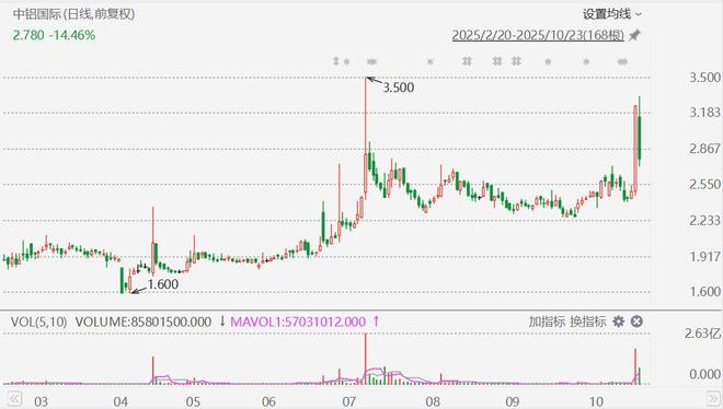 昨日尾盘拉升收涨超30%的中铝国际(2068.HK)今日大幅回调,盘中一度跌超16%至2.71港元。 昨日刺激股价拉升的消息是,有媒体称矿业巨头力拓考虑与中铝集团进行资产换股权交易(asset-for- equity swap)。力拓集团正在评估与中国铝业集团进行资产换股权的可能性,借以削减这家中国投资者 所持的11%股份。中铝集团将用其部分持股,换取力拓部分矿业资产的合作关系。互换可以让力拓更果 断地配置资本并进行并购。中铝集团可能感兴趣的资产包括几内亚的西芒杜(Simandou)铁矿砂项目和蒙 古国的奥尤陶勒盖(Oyu Tolgoi)铜矿。另一项可能的交换可能包括力拓的钛业务。 ...