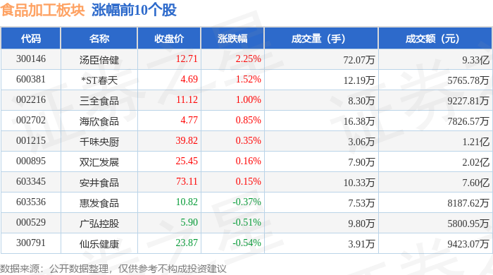 Market Overview - The food processing sector experienced a decline of 0.52% on October 30, with Jinzi Ham leading the drop [1] - The Shanghai Composite Index closed at 3986.9, down 0.73%, while the Shenzhen Component Index closed at 13532.13, down 1.16% [1] Stock Performance - Notable gainers in the food processing sector included: - Tongchen Beijian (300146) with a closing price of 12.71, up 2.25% on a trading volume of 720,700 shares and a transaction value of 933 million [1] - ST Chuntian (600381) closed at 4.69, up 1.52% with a trading volume of 121,900 shares and a transaction value of 57.66 million [1] - Major decliners included: - Jinzi Ham (002515) which fell 5.17% to a closing price of 6.60, with a trading volume of 676,500 shares and a transaction value of 455 million [2] - Jiaoda Anli (600530) down 3.71% to 8.30, with a trading volume of 146,700 shares and a transaction value of 123 million [2] Capital Flow - The food processing sector saw a net outflow of 273 million from institutional investors, while retail investors contributed a net inflow of 235 million [2] - The detailed capital flow for selected stocks showed: - Qianwei Yangchu (001215) had a net inflow of 18.24 million from institutional investors, but a net outflow from retail investors [3] - Delisi (002330) also experienced a net inflow of 6.77 million from institutional investors, with retail investors showing a net outflow [3]