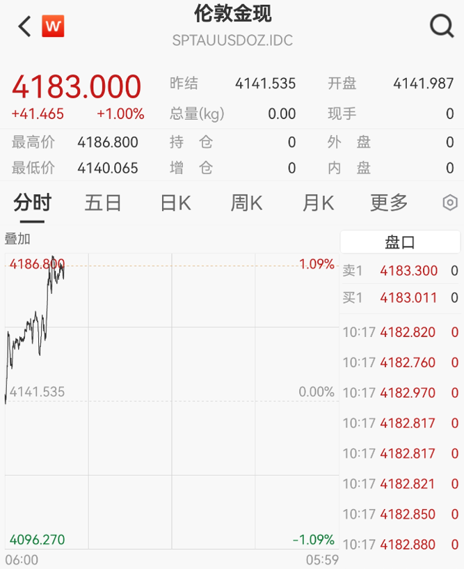 【导读】现货黄金再创历史新高,多家品牌金饰价格达1235元/克 中国基金报记者 晨曦 黄金,继续飙涨! COMEX黄金同步走高,盘中站上4200美元/盎司,涨超1%。 | W | COMEX黄金 | | | | | | | --- | --- | --- | --- | --- | --- | --- | | | GC.CMX | | | | | | | 4200.6 | | 昨结 | 4163.4 | 开盘 | 4160.1 | | | +37.2 | +0.89% | 总手 | 3.72万 | 现手 | | 2 | | 最高价 | 4205.8 | 持 仓 | 37.45万 | ター 할 | 1.81万 | | | 最低价 | 4157.3 | 增 仓 | 562 | 内 참 | 1.91万 | | | સ્ત્ર B4 | モ日 日K | | 周K 月K | | 童冬 | | | 叠加 | | | | | 풀□ | | | 4205.8 | | | 1.02% 卖1 | | 4200.9 | 3 | | | | | | 录1 | 4200.6 | 1 | | | | | | | 22:03 4201.1 ...