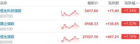 港股收评:恒指涨1.76%,科技、金融齐涨,AI应用走强!