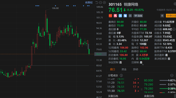 A股异动丨Q3增收不增利,锐捷网络大跌10.8%,月内累计跌幅近15%