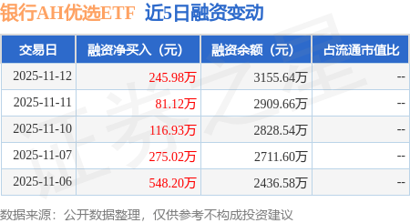 银行AH优选ETF:11月12日融资净买入245.98万元,连续3日累计净买入444.03万元