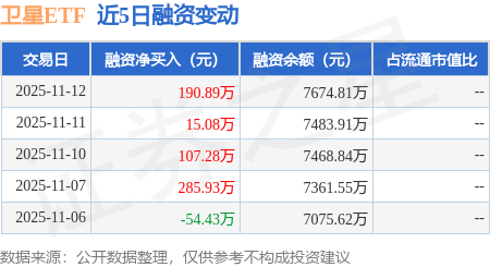 卫星ETF:11月12日融资净买入190.89万元,连续3日累计净买入313.26万元