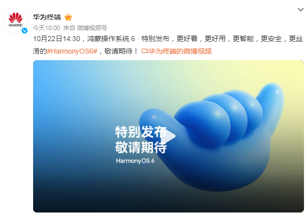 Core Insights - Huawei officially announced the special release of HarmonyOS 6 scheduled for October 22 at 14:30, highlighting improvements in aesthetics, usability, intelligence, security, and smoothness [1][3] Group 1 - HarmonyOS 6 promises a new experience with comprehensive evolution, becoming increasingly user-friendly and beloved over time [3] - The operating system will enhance connectivity and intelligent experiences, making it easier to use with lower latency [8] - The HMAF (HarmonyOS Multi-Agent Framework) will empower Harmony applications and meta-services for smarter upgrades, facilitating more natural, powerful, efficient, and collaborative human-computer interactions [9] Group 2 - Huawei's smart assistant, Xiaoyi, will see enhanced capabilities, providing users with more proactive and understanding service experiences [9]