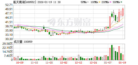 公司1月14日在交易所互动平台披露,截至最新(1月10日)股东户数为16964户,较上期(12月31日) 增加2618户,环比增长18.25%。这是该股股东户数连续第3期增长,也就是说筹码呈持续分散趋势。 公司发布的三季报数据显示,前三季度公司共实现营业收入5.85亿元,同比增长579.06%,实现净利润 3748.59万元,同比增长163.91%,基本每股收益为0.1100元,加权平均净资产收益率1.46%。(数据 宝) (文章来源:证券时报网) 航天南湖股价创出历史新高,截至10:50,该股上涨9.76%,股价报50.60元,成交量740.88万股,成交金 额3.52亿元,换手率8.53%,该股最新A股总市值达170.65亿元,该股A股流通市值43.93亿元。 证券时报·数据宝统计显示,航天南湖所属的国防军工行业,目前整体涨幅为0.70%,行业内,目前股价 上涨的有92只,涨幅居前的有航天南湖、航亚科技、北摩高科等,涨幅分别为9.76%、8.77%、7.88%。 股价下跌的有49只,跌停的有海格通信、盛路通信等4只。 两融数据显示,该股最新(1月16日)两融余额为2.22亿元,其中,融资余额为2.22亿元 ...