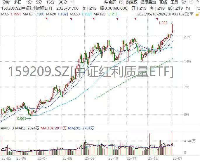 在近期市场风格趋于均衡、无风险利率仍处低位的环境下,"质量红利"策略因其兼具防御属性与成长潜 力,正成为资金进行中长期配置的重要方向之一。该ETF的持续资金流入与强势表现,反映出投资者对 高股息策略进行迭代升级的认可。 风险提示:基金有风险,投资需谨慎。 分析指出,该ETF近期持续受到资金关注,核心在于其独特的"质量红利"策略。与传统红利指数简单依 据股息率选股不同,中证红利质量指数在筛选高股息公司的基础上,进一步融入对企业盈利能力、成长 质量与财务稳健性的综合评估。这种策略在兼顾股息收益的同时,更强调企业的长期经营质量与可持续 增长能力,契合当前市场在经济增长结构转型过程中,对具备稳定现金流、良好治理结构和持续盈利能 力的优质企业的价值重估需求。 1月5日,A股市场整体表现积极,其中以"高质量分红"为核心逻辑的中证红利质量ETF(159209)表现尤 为突出,单日涨幅超2.6%,同时获得超2000万元资金净流入,创下近期单日流入规模新高。据统计, 该ETF已连续14个交易日获得资金净流入,累计净流入额超过1.4亿元。 ...