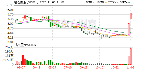 Group 1 - The core point of the article highlights that Fushi Holdings has reached a transaction volume of 1.007 billion yuan, marking a new high since February 28, 2025 [2] - The latest stock price of Fushi Holdings has increased by 20.08%, with a turnover rate of 18.84% [2] - The previous trading day saw a total transaction volume of 639 million yuan for the stock [2] Group 2 - Fushi Holdings was established on January 23, 2003, with a registered capital of 9.63884336 billion yuan [2]