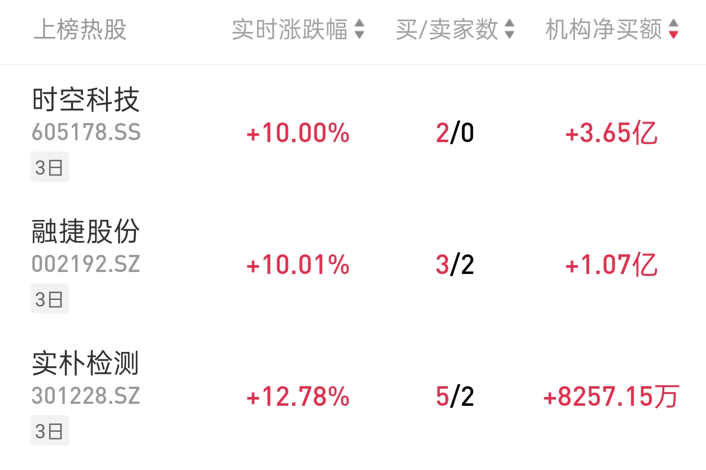 龙虎榜机构热股 今天机构龙虎榜上榜39只个股,净买入13只,净卖出26只。当日机构买入最多的个股前三位是:时空科技(3.65亿)、融捷股份(1.07亿)、实朴检测 (8257万) 个股龙虎榜 一、福建自贸 海峡创新 个股龙虎榜 公司实控人为平潭国资委,是平潭国资控股的唯一上市公司 中国武夷 | 上榜热股 | 实时涨跌幅↓ 买/卖家数♦ | | | --- | --- | --- | | 时空科技 605178.SS | +10.00% | 2/0 | | 3日 | | | | 融捷股份 002192.SZ | +10.01% | 3/2 | | 3日 | | | | 实朴检测 | | | | 301728 57 | 117 700% | 5/7 | 融捷股份 龙虎榜显示,今日3家机构净买入1.07亿。 龙虎榜知名游资 公司实控人福建国资委,主营投资开发、工程承包、外经外贸 二、锂电池 子公司天宜锂业拥有从事锂盐行业多年的技术、管理团队,电池级氢氧化锂产品、电池级碳酸锂产品主要应用于新能源汽车电池、通讯电子产品电源设备、 能源存储等领域,可以实现电池级氢氧化锂产品13.5万吨/年,电池级碳酸锂产品3万吨/年。 ...