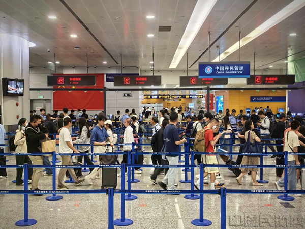 繁忙的浦东机场节前出境客流高峰(上海机场边检站供图) 为服务节前大客流通关,上海机场边检站推出多项举措:开设家庭爱心专区、暖心通道,为携带儿童家 庭提供更优通关服务;科学调整中外通道比例,增加待检区域警力,强化快捷通道等区域引导;全体执 勤民警、文职加强支援备勤,坚守岗位,为中外旅客打造便捷顺畅的通关环境。 10月1日至3日,浦东国际机场口岸出境旅客数量与上周同期相比,还将迎来大幅增长,10月6日起则将 迎来旅客返程入境高峰。上海机场边检站提醒广大出入境旅客,通关前请关注航班动态,确保证件及签 证有效,以便快速完成出入境查验手续;如需咨询出入境相关业务,可随时拨打国家移民管理局12367 服务热线。(编辑:李季威 校对:张彤 审核:程凌) 《中国民航报》、中国民航网 记者钱擘 通讯员李宇航 报道:来自上海机场边检站的统计显示,截至9 月30日16时,当日上海浦东国际机场口岸出境人员突破4.6万人次,较前一日增长4%,较上月同期增长 18%,创下近年来节前同时段出境客流新高。 以家庭为单位、"亲子游"为主线的旅客成为今年国庆、中秋假期出境客流的主力军,日本、韩国、泰国 位居我国内地居民自浦东机场口岸出发的出境游 ...