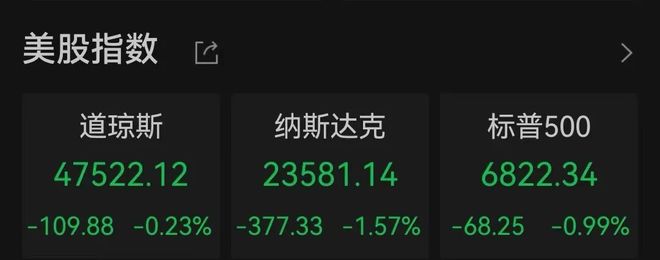 国际贵金属期货普遍收涨,COMEX黄金期货涨0.94%,COMEX白银期货涨1.71%。 美股三大股指全线收跌 来源:中国证券报-中证网 当地时间10月30日,美股三大股指全线收跌,其中,纳指跌1.57%。大型科技股多数下跌,META跌超 11%,波音跌超6%,特斯拉跌逾4%,亚马逊跌逾3%。中概股多数下跌,小马智行跌近7%,世纪互联 跌超5%。 当地时间10月30日,美股三大股指全线收跌,Wind数据显示,截至收盘,道指跌0.23%,报47522.12 点;标普500指数跌0.99%,报6822.34点;纳指跌1.57%报23581.14点。 大型科技股多数下跌,万得美国科技七巨头指数下跌2.15%。个股方面,META跌超11%,特斯拉跌超 4%,亚马逊跌逾3%,微软跌近3%,英伟达跌超2%,苹果小幅上涨,谷歌-C涨超2%。 | 招标 成分 | 资讯 | 相关基金 日度 | | --- | --- | --- | | 名称 | 现价 | 涨跌幅 ◆ | | 谷歌(ALPHABET)· | 281.900 | 2.45% | | GOOG.O | | | | 苹果(APPLE) | 271.400 | 0.6 ...