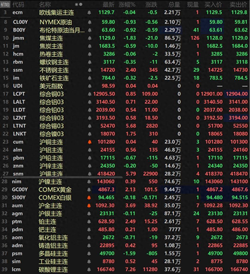金属普涨 伦沪锡涨逾5% 碳酸锂涨超7% 沪金突破1100元/克