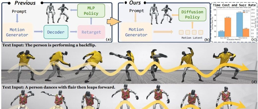 作者丨 Zhe Li等 点击下方 卡片 ,关注" 具身智能 之心 "公众号 编辑丨具身智能之心 本文只做学术分享,如有侵权,联系删文 >> 点击进入→ 具身智能之心 技术交流群 更多干货,欢迎加入国内首个具身智能全栈学习社区 : 具身智能之心知识星球 (戳我) , 这里包含所有你想要的。 ★ 本文的主要作者来自悉尼大学、哈尔滨工业大学、香港科技大学、上海交通大学和北京智源人工智能研究院。 本文的第一作者为即将入学悉尼大学的博士生李哲,主要研究方向为具身智能和3D数字人。 本文的共一作者兼项目负责人为北京智源人工智能研究院研究员迟程。 本文的通讯作者为北京大学计算机学院研究员、助理教授仉尚航和悉尼大学副教授徐畅。 领域研究痛点:多阶段流程带来的信息损失 在虚拟世界中,自然语言可以轻松驱动一个3D数字人完成人们所描述的动作,于是人们将目光转向于现实,从3D虚拟数字人转向人形机器人。然而,自然语言 虽为人形机器人提供了天然交互接口,但现有基于语言引导的人形机器人运动流程仍显臃肿且不可靠。 通过绕开显式的运动解码与重定向流程,RoboGhost使基于扩散模型的策略能够直接从噪声中解算出可执行动作,在保持语义完整性的同 ...