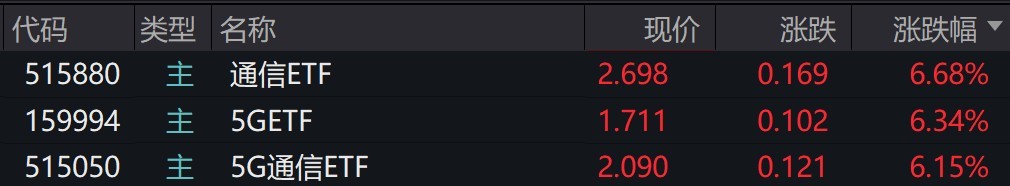 通信概念股走强,5G通信相关ETF涨超6%