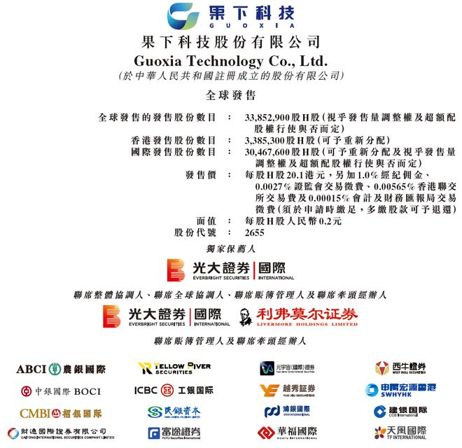 果下科技(02655)招股,无锡惠山国资、君宜、雾凇资本参与基石投资,12月16日香港上市