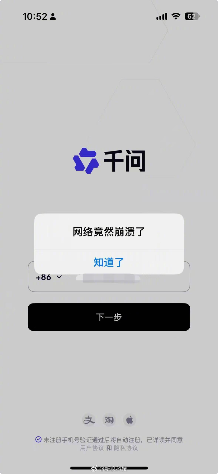 +86 V 下一步 支 淘 ( ⑦ 未注册手机号验证通过后将自动注册,已详读并同意 用户协议 和 隐私协议 6 YOHARAR 【#阿里巴巴千问崩了#:指令无响应,服务暂不可用】阿里巴巴新推出的AI应用"千问"公测首日即遭遇 流量洪峰,因用户涌入过载,部分服务出现拥堵和中断。据多名用户反馈及应用内提示内容,该应用在 今天官宣上线后不久便显示"入口拥堵"。部分用户称,在对话框输入指令后无法获得响应,服务暂时不 可用。 截至发稿,阿里方面并未回应@新浪科技 问询。消息面上,今日阿里巴巴宣布"千问"进军C端市场。据 悉,"千问"定位为与ChatGPT竞争的"个人AI助手",计划整合其电商、地图和本地生活等庞大生态系 统。(新浪科技) ...