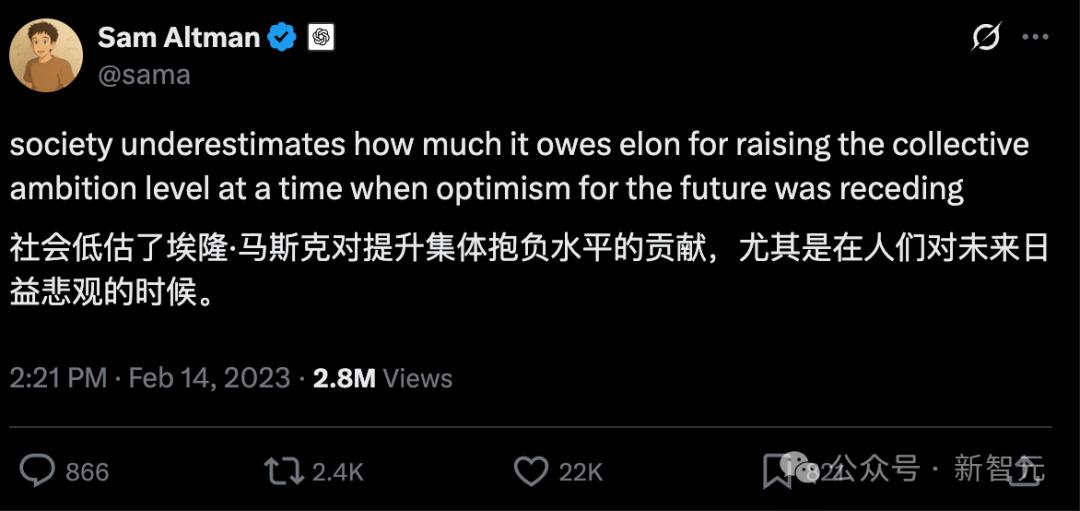 曾并肩打天下,如今对簿公堂。 一条短信,撕开了奥特曼与马斯克破碎的兄弟情背后,鲜为人知的一角。 据一份法庭文件显示,奥特曼曾给马斯克的亲信密友Shivon Zilis发短信,询问自己是否应该发一条推文,公开夸一夸马斯克,以修复二人的关系。 这条短信被提交给联邦法院,作为马斯克起诉奥特曼与OpenAI案件的「呈堂证供」。 文件显示,奥特曼曾在2023年2月9日向Zilis发短信征求她的意见,自己是否应该发推公开称赞马斯克。 短信的内容是这样的: 顺便问下,我发一条夸Elon(马斯克)的推文是个好主意吗?他之前私信我,说自己没出现在OpenAI第一天的合照里。我一直想写点什么, 比如我们多么敬佩他、他对OpenAI早期的贡献有多关键之类的。 短信发出5天后,奥特曼真的就这么做了。 他在X平台上发推文称赞马斯克: 「社会低估了埃隆·马斯克提升集体雄心的功劳——那是在人们对未来的乐观情绪逐渐消退的时候。」 这条短信显示了奥特曼正试图小心翼翼地修补、平衡他与马斯克之间那段复杂的关系。 他想通过公开认可马斯克在公司早期的重要作用来缓和二人之间的矛盾。 他们曾在2015年共同创立OpenAI,但由于对公司的发展方向看法不一 ...