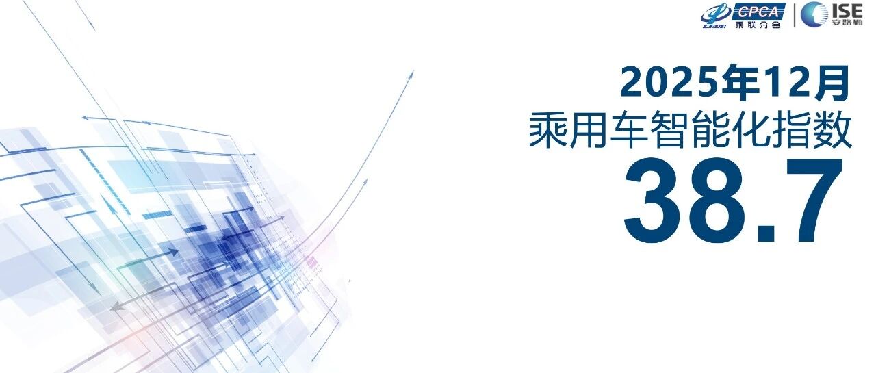 【联合发布】2025年12月乘用车智能化指数为38.7