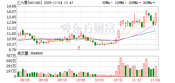 每经AI快讯,11月24日,三六零盘中涨停,涨幅9.99%,成交额超46亿元。 (文章来源:每日经济新闻) ...