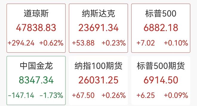 记者丨刘雪莹 编辑丨吴桂兴 北京时间10月28日晚, 美股三大指数小幅上涨,均刷新历史新高。 | 道琼斯 | 纳斯达克 | 标普500 | | --- | --- | --- | | 47838.83 | 23691.34 | 6882.18 | | +294.24 +0.62% | +53.88 +0.23% | +7.02 +0.10% | | 中国金龙 | 纳指100期货 | 标普500期货 | | 8347.34 | 26031.25 | 6914.50 | | -147.14 -1.73% | +67.50 +0.26% | +6.25 +0.09% | 苹果盘初总市值一度首次升破4万亿美元,成为继英伟达和微软后,第三家市值达4万亿美元的美国上市 公司。 英特尔盘中触及41.67美元,再创新高。 Paypal盘前涨幅扩大至14%,目前涨超10%。据智通财经报道,Paypal据称与OpenAI达成合作协议,将 支付钱包嵌入到ChatGPT中。 同样有AI大消息的还有高通,昨日其宣布推出两款AI芯片挑战英伟达,股价一度涨约20%,目前回调近 4%。(详情:) 多只热门中概股下跌,纳斯达克金龙跌约1.7% ...