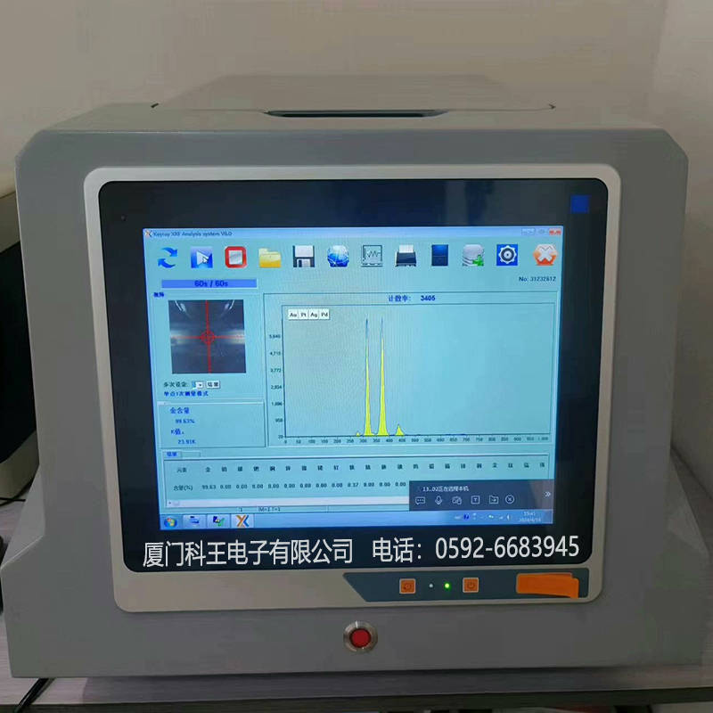 含金量检测仪:X射线荧光光谱技术的深度解析 一、XRF光谱技术的工作原理:原子能级的微观舞蹈 (一)原子能级跃迁理论:元素识别的物理基础 XRF技术基于原子内层电子受激跃迁与特征辐射释放的物理过程。当高能X射线(能量5-50 keV)穿透黄金样品表 层(深度1-50 μm)时,会击出原子内层(如K层或L层)电子,形成电子空穴。外层电子向内层跃迁填补空位 时,释放出特定能量的特征X射线荧光。例如,金元素(Au)的Lα特征峰位于9.71 keV,银元素(Ag)的Kα线为 22.1 keV。这些特征峰的能量与元素种类一一对应,强度则反映元素含量,构成纯度分析的物理基础。 | 分析范围 | 0.01%~99.99 % | | --- | --- | | 测量精度 | 0.05% | | 高压电源 | 0~50KV | | 光管管流 | OuA~1000uA | | 摄像头 | 高清摄像头 | | 探测器 | 新型Si-PIN探测器 | | 多道分析器 | 数字多通道 | | 样品腔尺寸 | 270 * 260 * 100 (mm) | | 测试时间 | 5~60秒 | | 测量元素 | 从钾(K)~铀(U)之间74种 ...