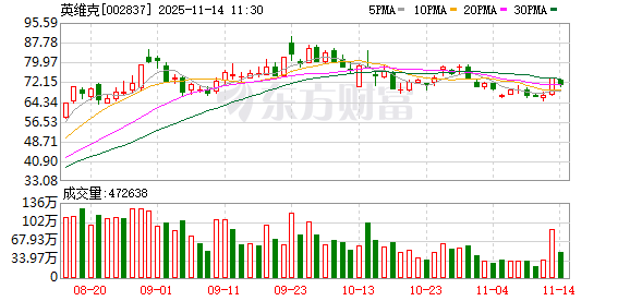 Core Insights - The company, Yingweike (002837.SZ), is actively engaged in the energy storage thermal management sector and possesses liquid cooling heat dissipation technology capabilities [1] - The company has applied its related products in several energy storage projects, with specific project implementation details and order information to be disclosed in accordance with legal requirements if they meet disclosure standards [1] - The projected revenue from energy storage applications for the first half of 2025 is approximately 800 million yuan, representing a year-on-year growth of about 35% [1] Summary by Categories - **Company's Engagement in Energy Storage** - The company has made significant strides in the energy storage thermal management field and has developed relevant liquid cooling heat dissipation technologies [1] - Products related to these technologies have already been implemented in certain energy storage projects [1] - **Future Revenue Projections** - The company anticipates that its revenue from energy storage applications will reach around 800 million yuan in the first half of 2025, which is an increase of approximately 35% compared to the previous year [1]