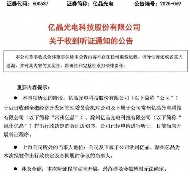昔日招商引资的"香饽饽"项目频现纠纷,近日,亿晶光电103亿光伏项目"烂尾",遭地方国资追责的事 件,成为这年末岁尾,行业周期性矛盾集中爆发的缩影,引发关注! 103亿项目"烂尾" 从开工投产到停滞追责 2025年12月28日,亿晶光电发布公告称,公司于近日收到全椒经济开发区管理委员会拟对公司及下属子 公司常州亿晶光电科技有限公司(以下简称"常州亿晶")、滁州亿晶光电科技有限公司(以下简称"滁 州亿晶")作出行政决定的听证通知书,拟解除投资协议、追回1.4亿元出资款,并追究公司代建费用、 租金等相关违约责任。 这场纠纷的源头要追溯至2022年的光伏产业扩张热潮。彼时N型光伏技术兴起,亿晶光电为弥补电池端 产能缺口,于2022年9月宣布拟在安徽全椒县投建年产10GW光伏电池、10GW光伏切片及10GW光伏组 件的大型项目,其中仅一期10GW高效N型TOPCon光伏电池项目预计投资就达50亿元,整体项目投资规 模达103亿元。值得注意的是,亿晶光电当时账面货币资金仅约30亿元,公司已明确提示项目存在资金 缺口,需通过银行融资等方式补足,存在资金筹措不及预期的风险。 为推进项目落地,2022年10月,亿晶光电控股子 ...