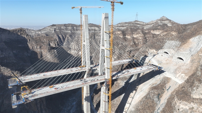 2月22日,巩义市青龙山后寺河景区内游人络绎不绝。90后陈岩却无心加入这份悠闲,他驾驶越野车来到景 区门口,一脚油门拐向一条崎岖的小路,直奔郑洛高速后寺河特大桥工地而去。 通往施工现场的山路多是临时铺设,车辆剧烈的颠簸频繁把人抛离座椅。这样的路途对陈岩来说已习以为 常,他是中交一公局郑洛高速三标项目副总经济师,今年春节负责留守。"大桥索塔下,材料仓库里,都是 巡视的必经点位。"陈岩说。 又一次在索塔底部仰望,陈岩仍对大桥赞叹不已。作为郑洛高速控制性工程,后寺河特大桥是目前国内跨径 最大的曲线梁独塔斜拉桥。大桥采用超高"A"型索塔,左幅塔高207.5米,右幅塔高211米。2025年4月索塔顺 利封顶后,主梁施工正稳步推进。预计今年8月合龙,10月完成桥面贯通。 百米高空,以索塔为中心,大桥主梁像展开的双臂奋力伸向两侧悬崖,密集的粗壮钢索牢牢拉住每段桥体。 目前,主梁施工整体进度已达61%。大桥完工后,将衔接应天寨隧道与青龙山隧道。 索塔表面,一道红色钢管从底部直通施工作业面高度,十分壮观。"这是向塔顶输送混凝土的。"陈岩解释, 大桥很多建设工作必须在高空完成,难度不言而喻,施工团队采用了多项先进工艺,一次性超高 ...